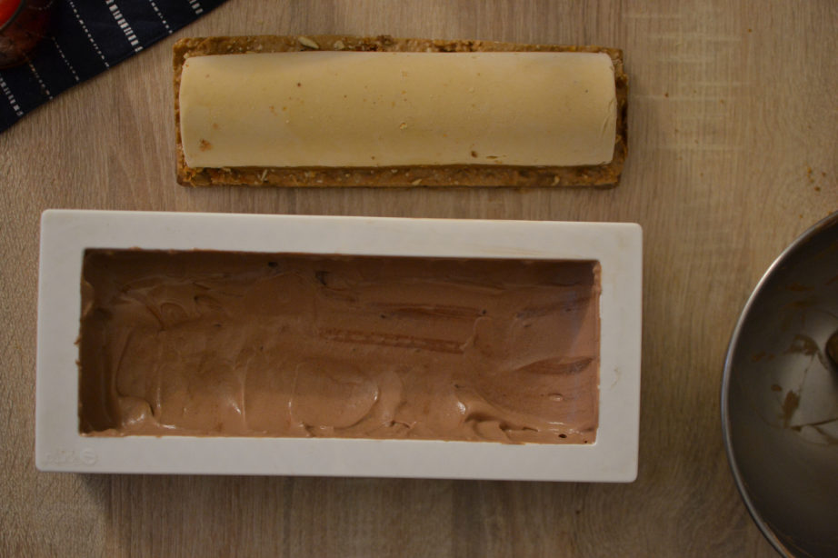 • J-2 : Réalisation de la mousse chocolat cacahuètes et montage de la bûche (à congeler)